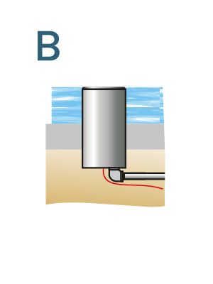 Einbau der Systeme in ein, entsprechend dem gewünschten Wasserstand, hochgezogenes Rohr.